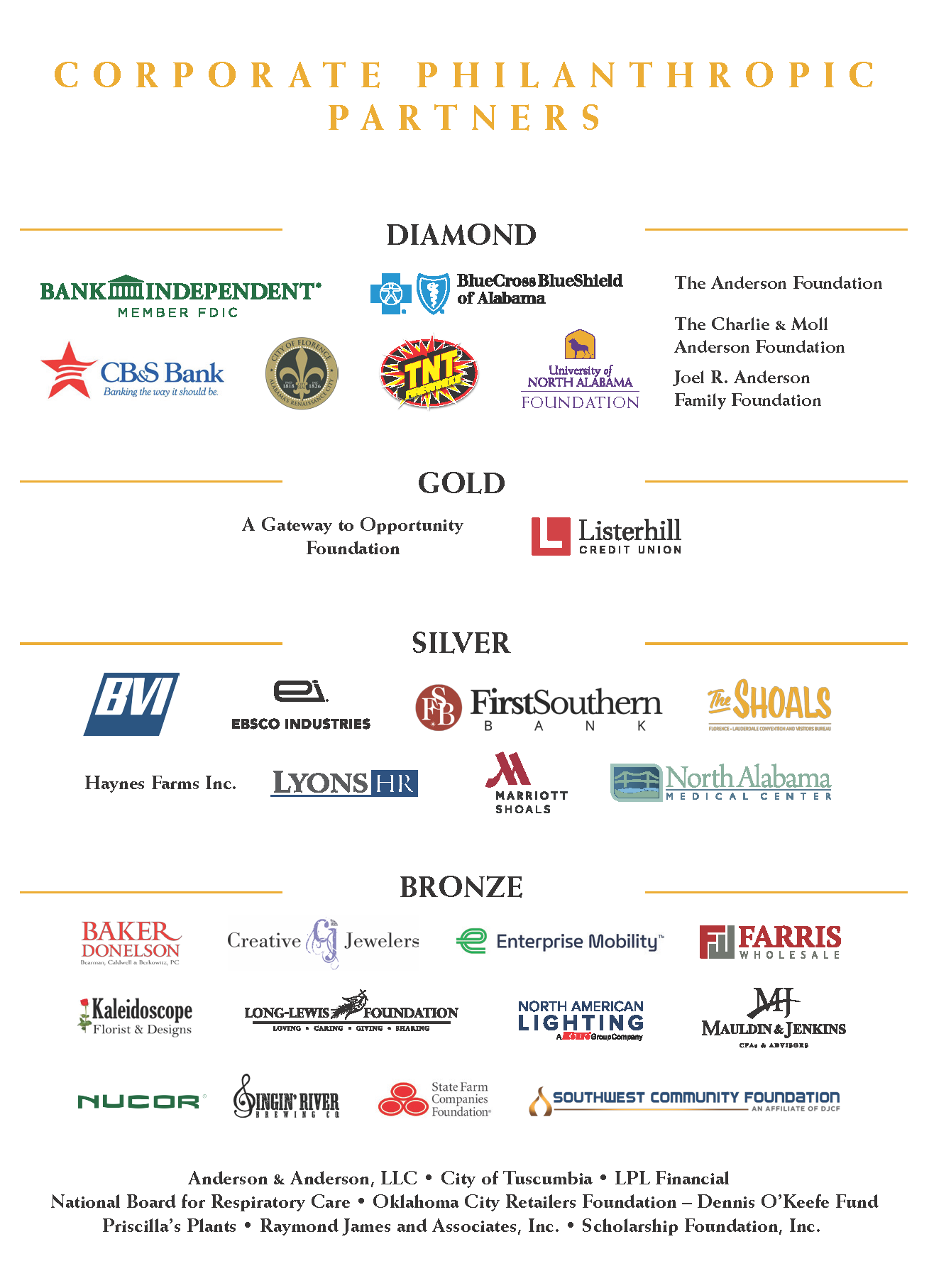 The Corporate Philanthropic Partners program – a partnership between community and business leaders and the UNA Foundation – provides gifts that empowers the University of North Alabama to achieve the highest levels of excellence.