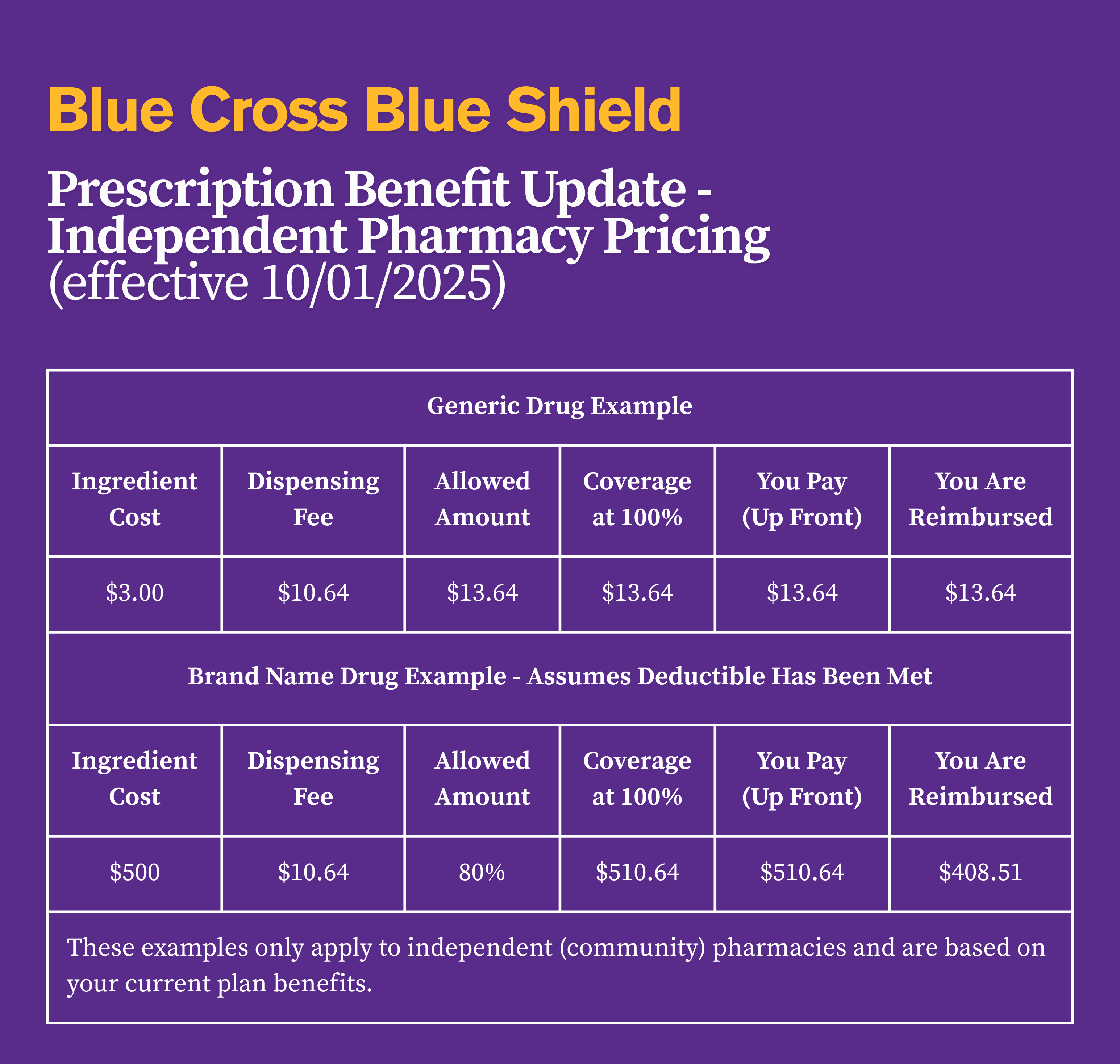 Prescription Benefit Update: Changes to Independent Pharmacy Pricing (Effective October 1, 2025)