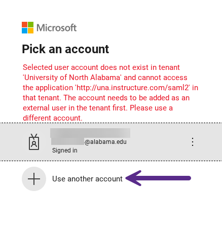 If you are already logged in with another Microsoft account, click on "Use another account" to enter your UNA email address.