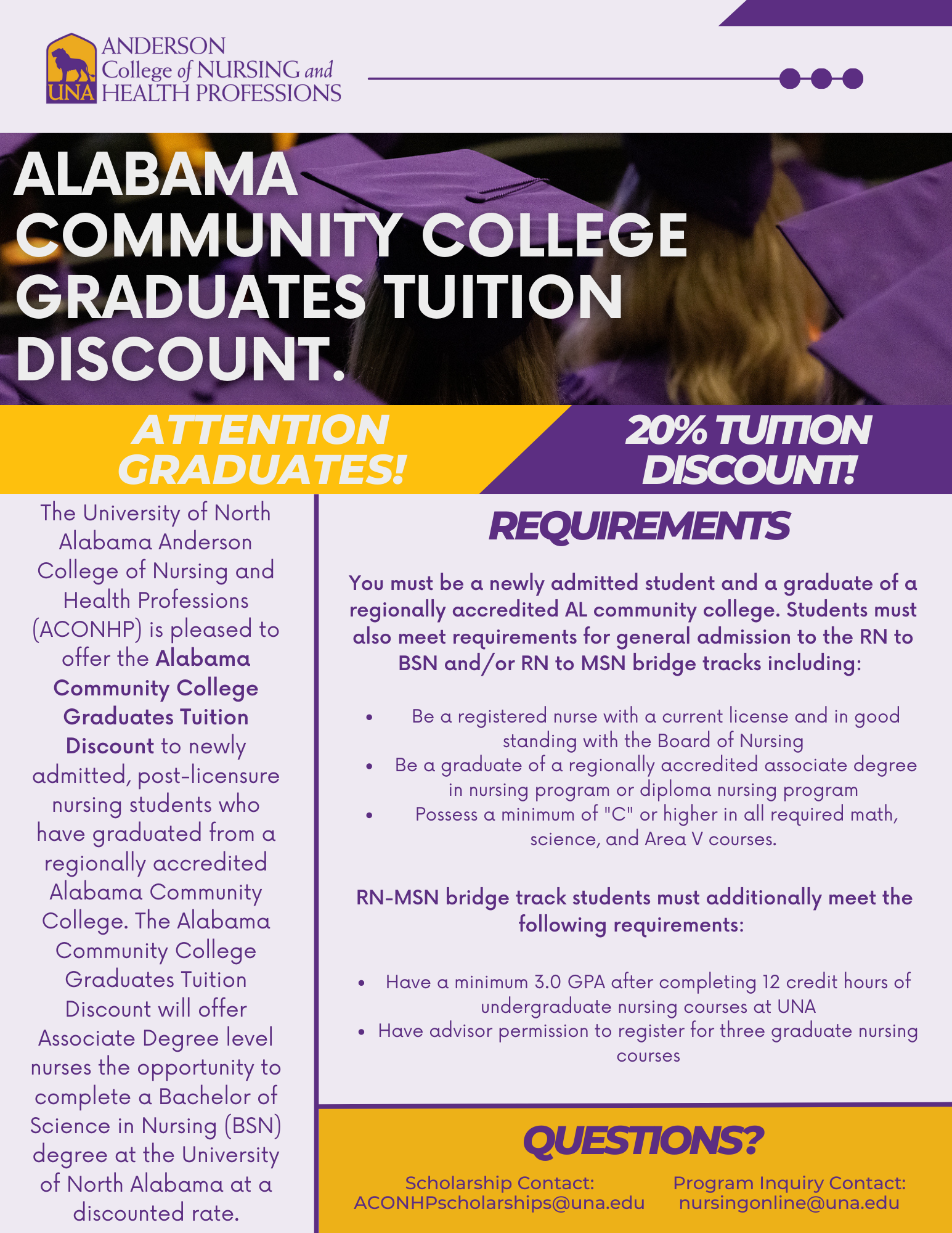 - Alabama Community College Graduates Tuition Discount : RN to BSN/RN to MSN Bridge Students